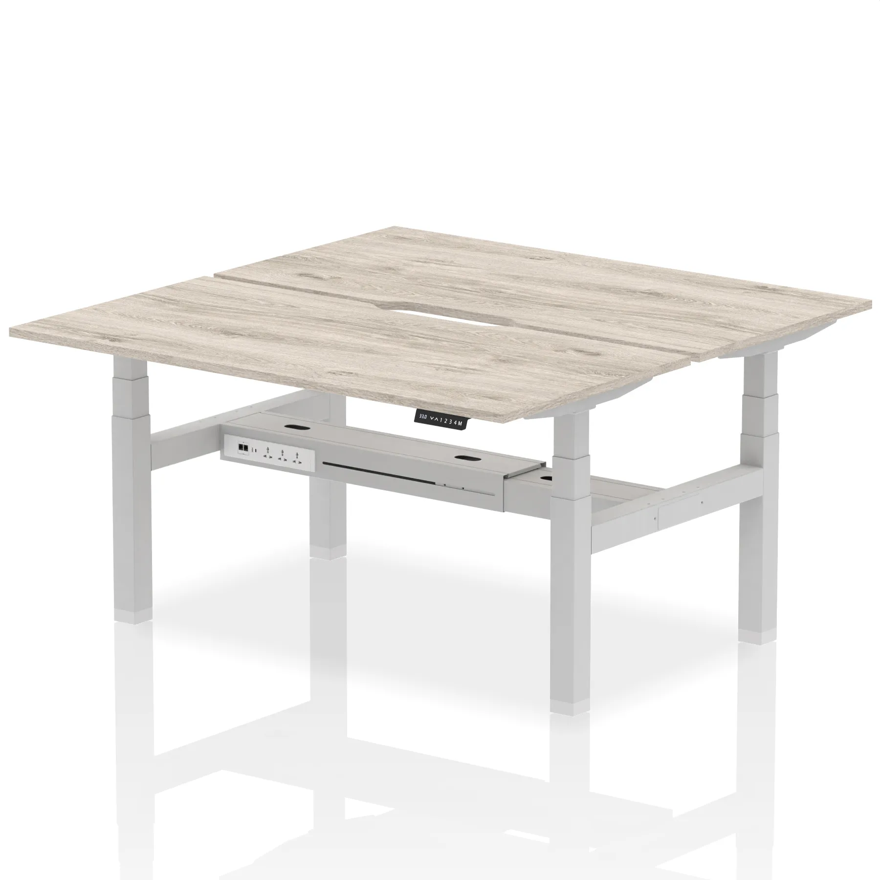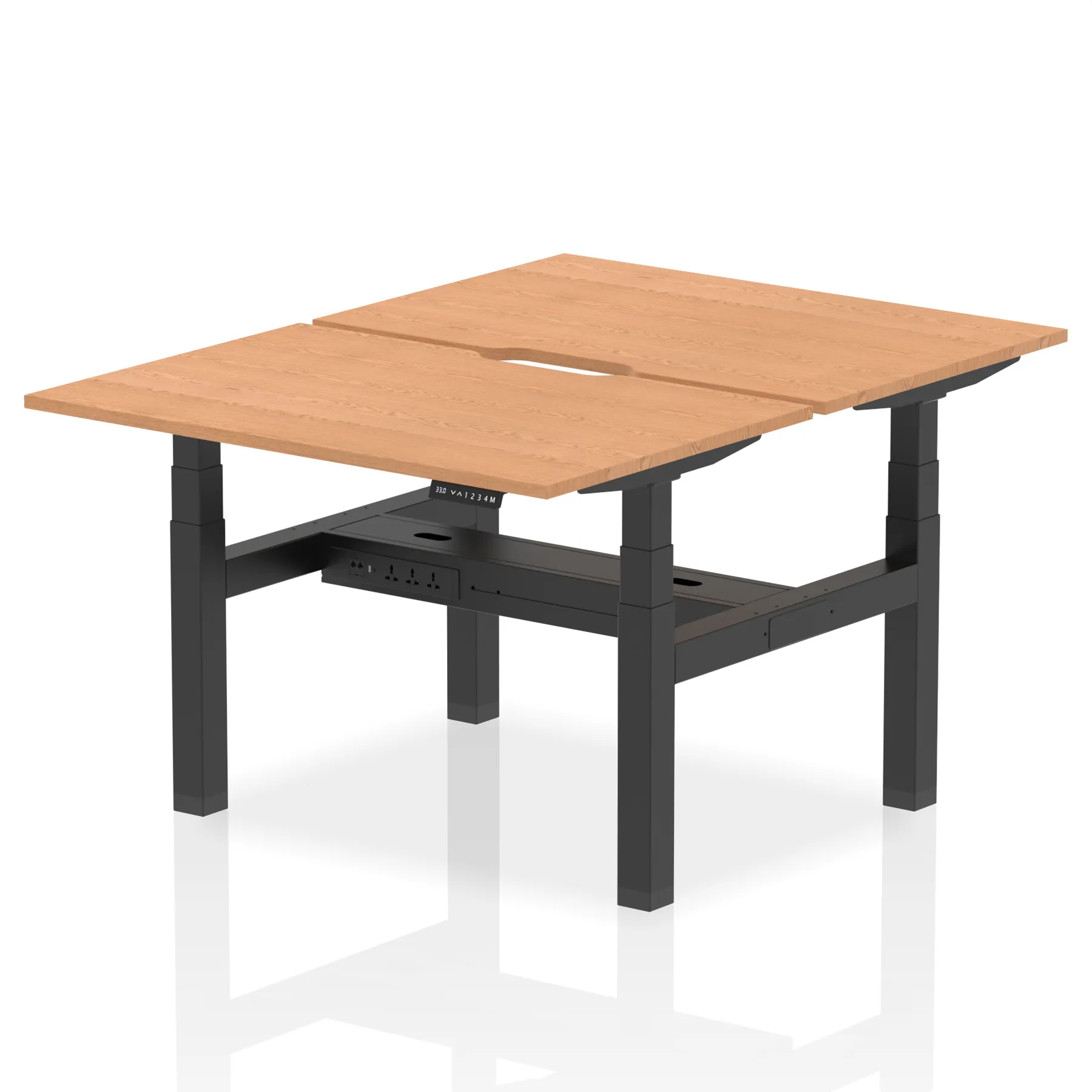 Elevate your team’s workspace with the Air Back-to-Back Height Adjustable Desk for two. This workstation features stylish scalloped edging and is equipped with two Ethernet ports, a USB port, a USB-C port, and three UK plugs per desk, ensuring optimal connectivity. The adjustable height promotes ergonomic working positions. Designed for collaboration and efficiency, it’s the perfect blend of aesthetics and functionality for the modern office.