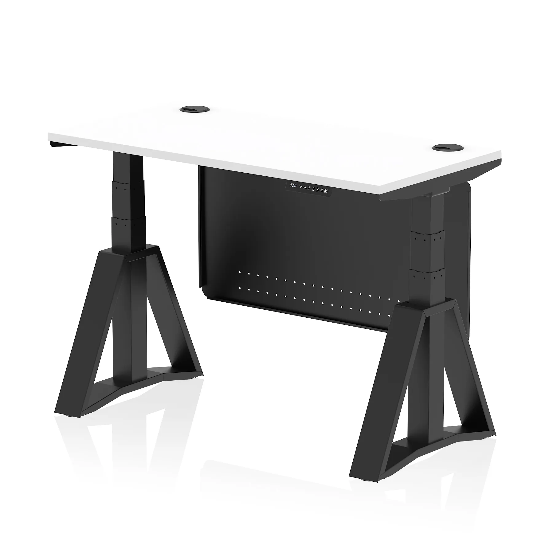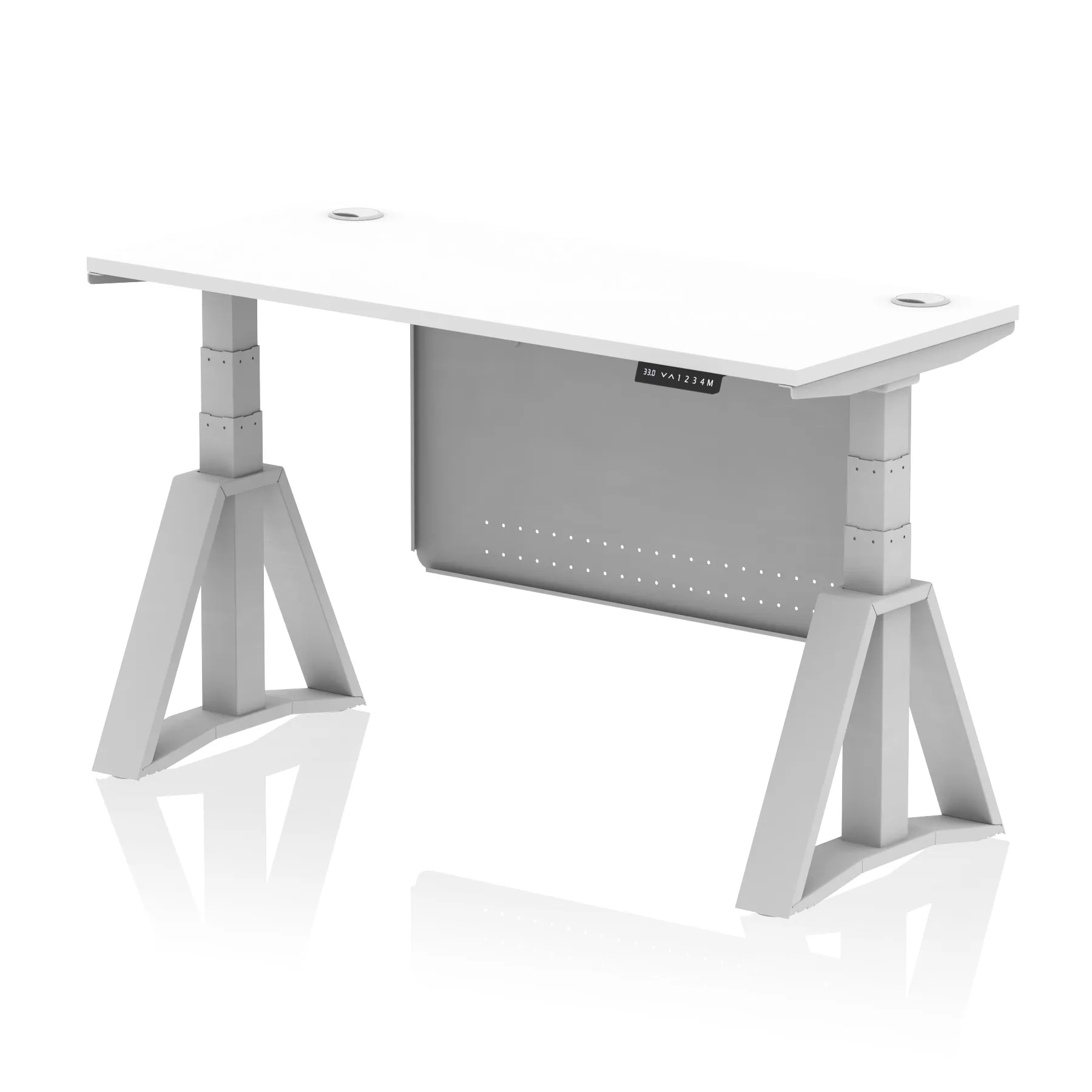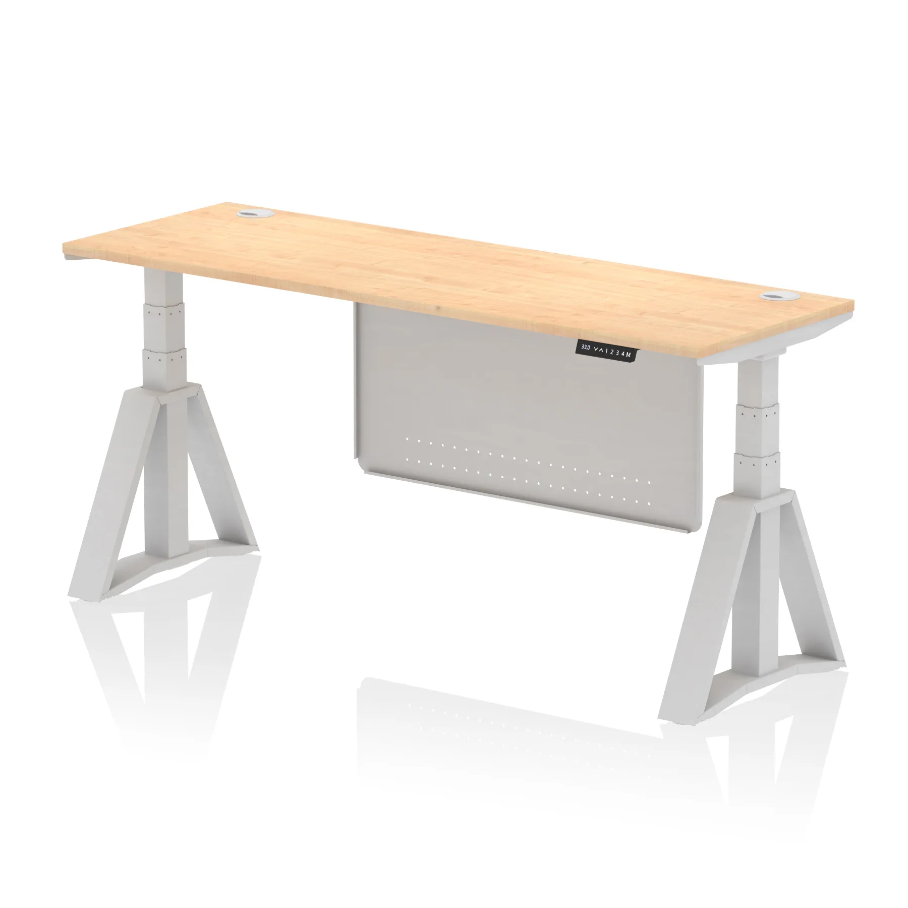 Air Height Adjustable Slimline Desk With Cable Ports With Steel Modesty Panel With Piste Foot