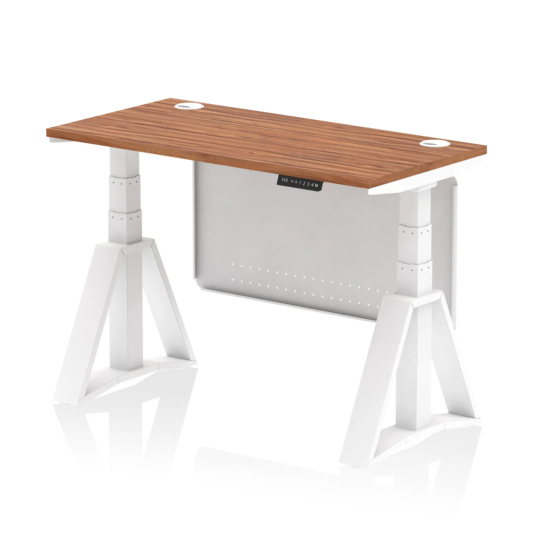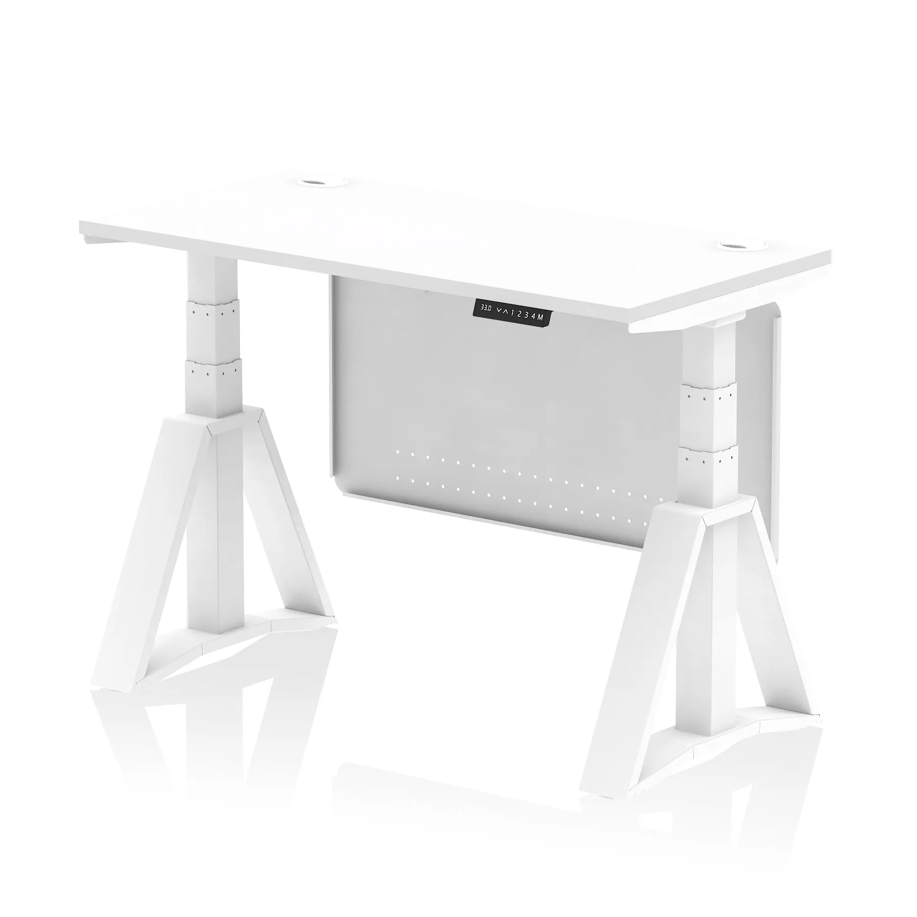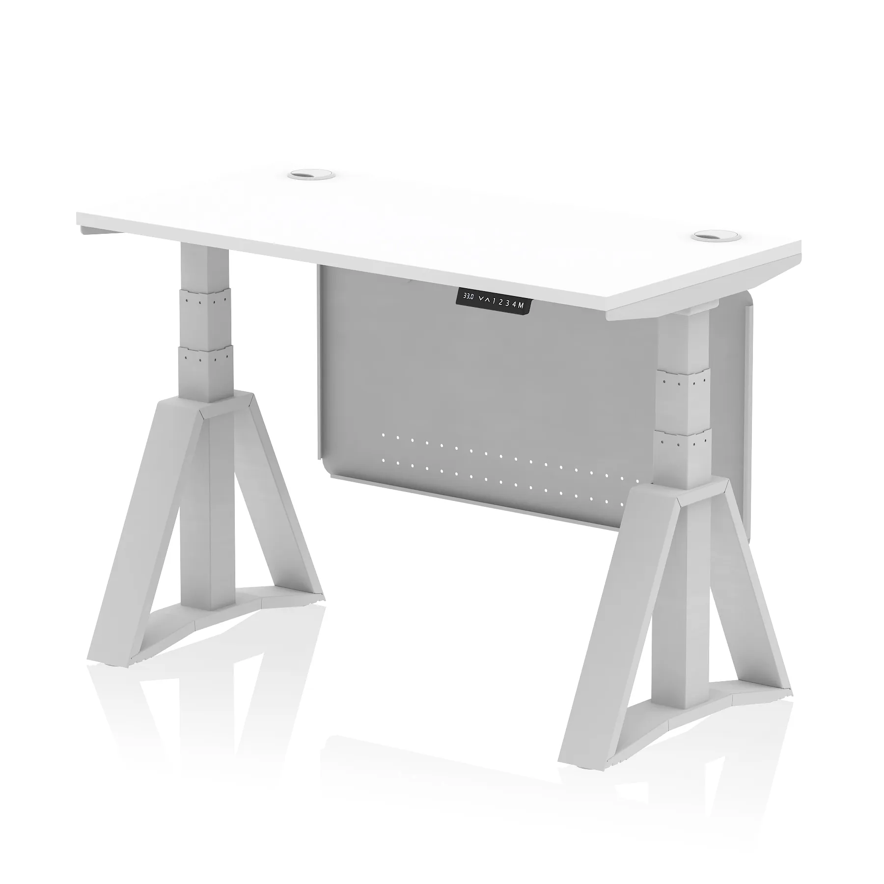 Air Height Adjustable Slimline Desk With Cable Ports With Steel Modesty Panel With Piste Foot