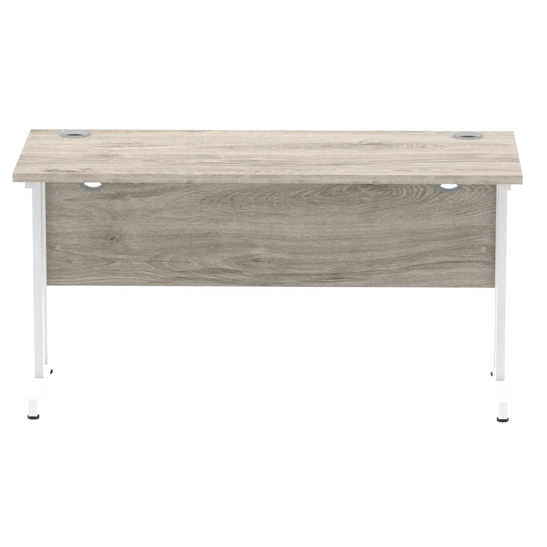 Impulse contract desk | 25mm tops | Heat resistant melamine finish | 18mm modesty panels | 2mm protective abs edging | Silver coated double strut legs | 2 cable ports | Height adjustable feet | Steel to steel fixings | 2 modesty panels slots |Deep set modesty panel (5″) allows for compatibility of most screen clamp fittings | Weight Capacity 135Kg