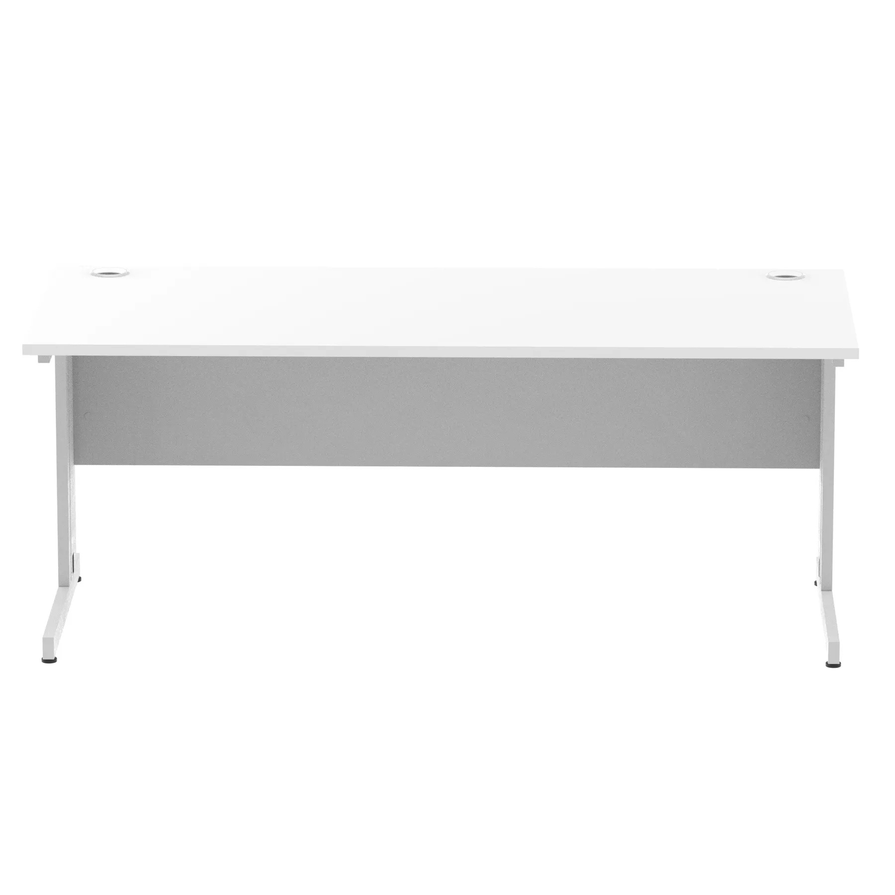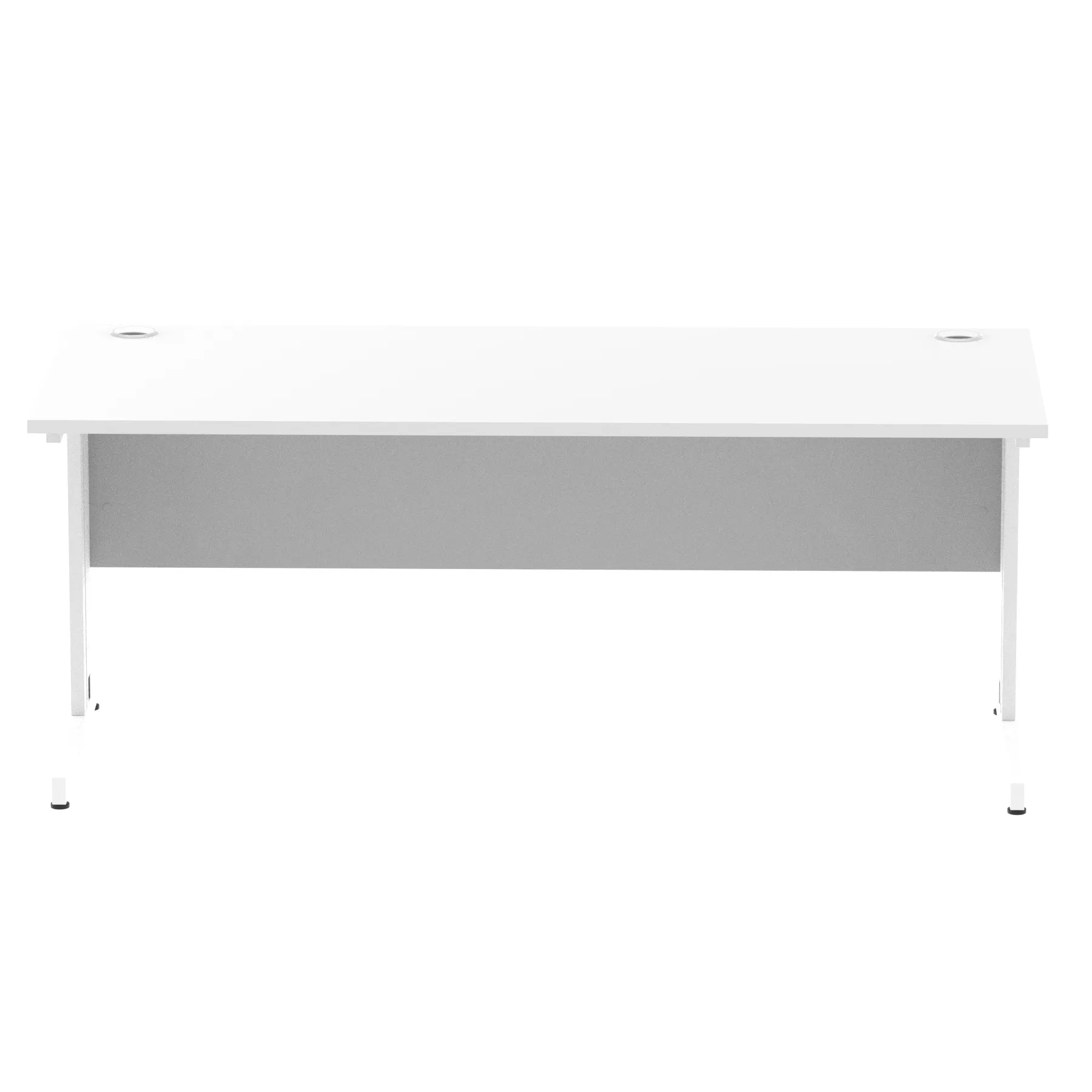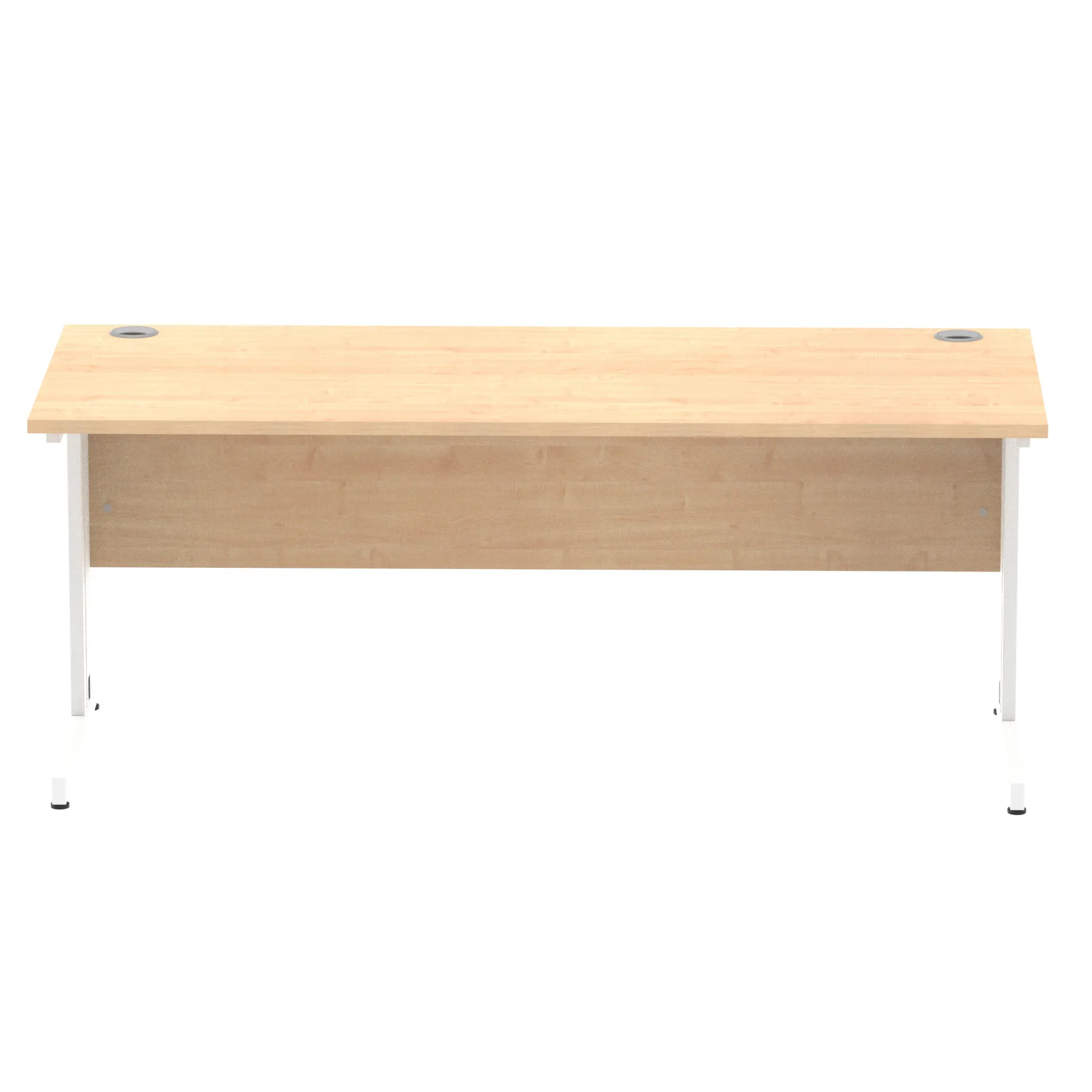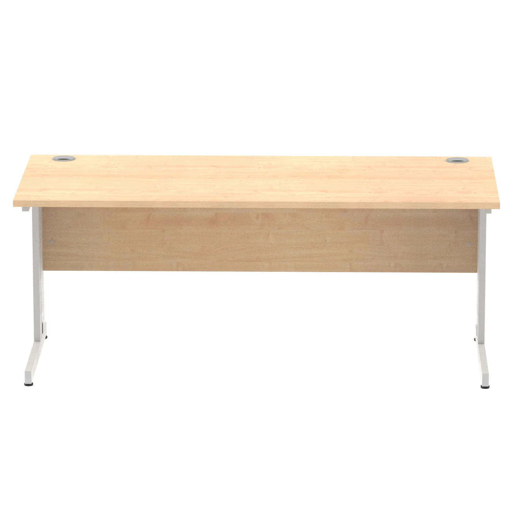 Impulse contract desk | 25mm tops | wire management panel | Heat resistant melamine finish | 18mm modesty panel | 2mm protective abs edging | Silver coated double strut legs | 2 cable ports | Height adjustable feet | Steel to steel fixings | 2 modesty panel slots | Deep set modesty panel (5″) allows for compatibility of most screen clamp fittings | Weight Capacity 135Kg