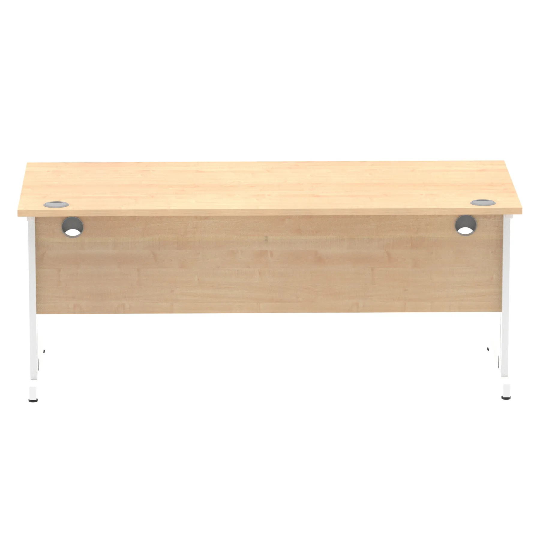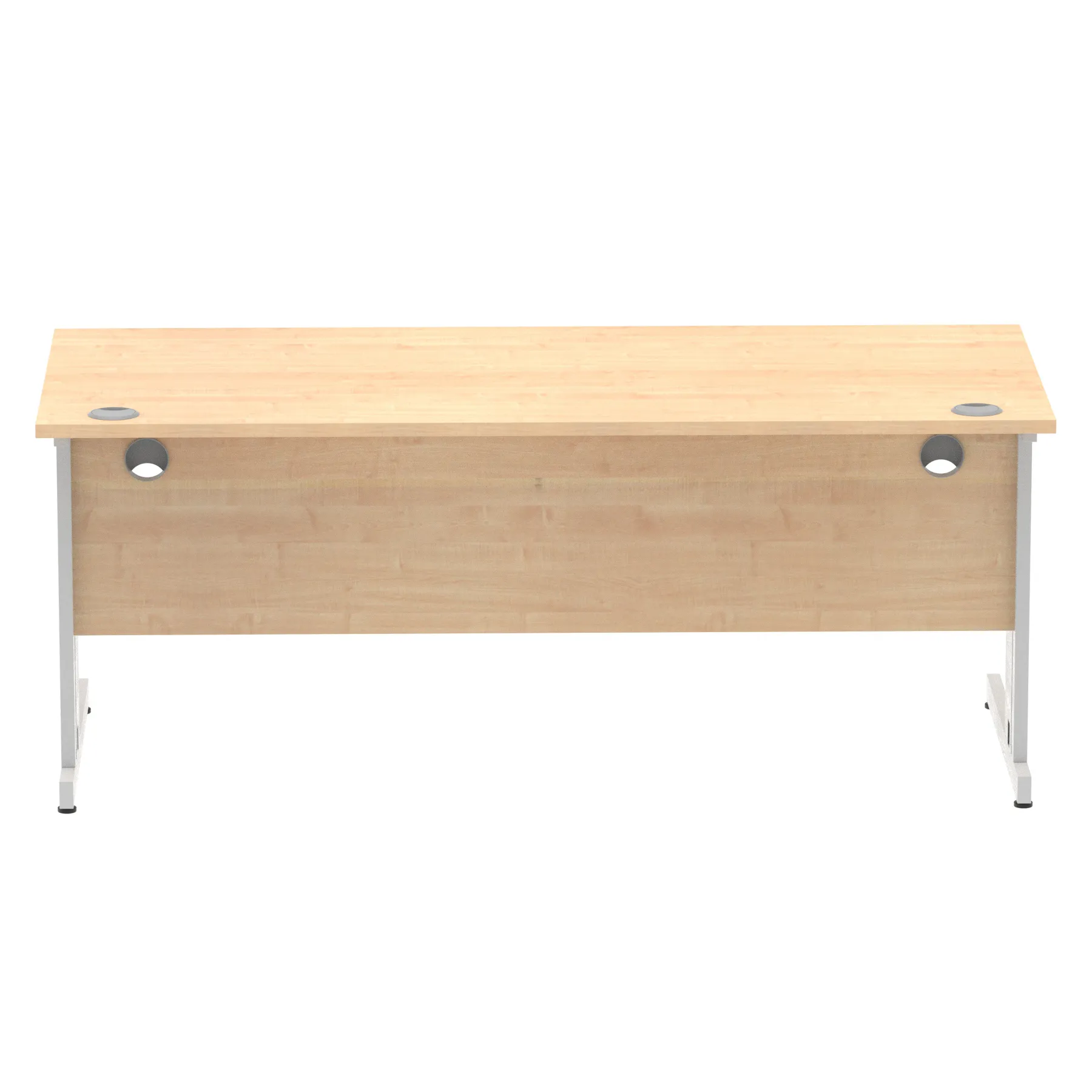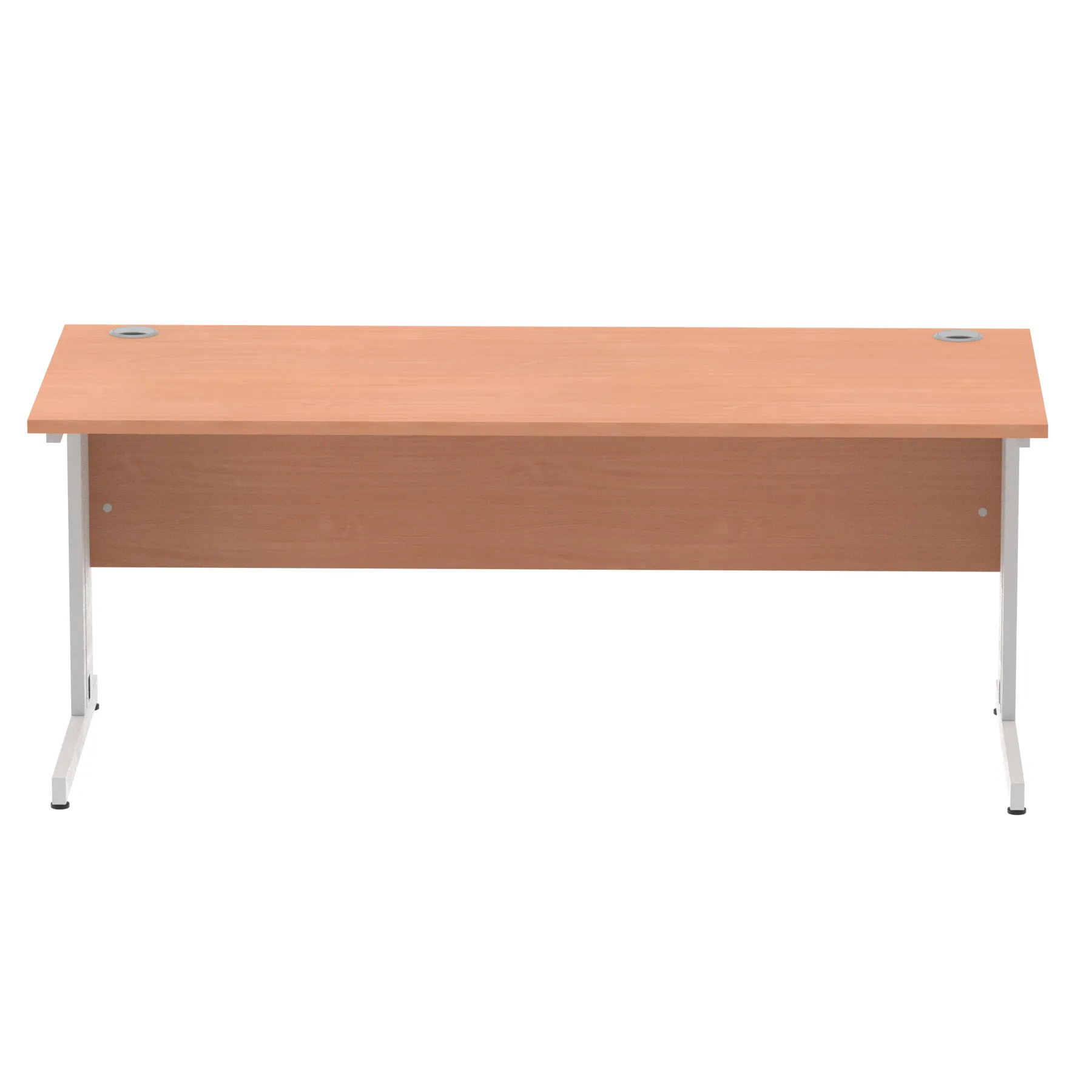 Impulse contract desk | 25mm tops | wire management panel | Heat resistant melamine finish | 18mm modesty panel | 2mm protective abs edging | Silver coated double strut legs | 2 cable ports | Height adjustable feet | Steel to steel fixings | 2 modesty panel slots | Deep set modesty panel (5″) allows for compatibility of most screen clamp fittings | Weight Capacity 135Kg