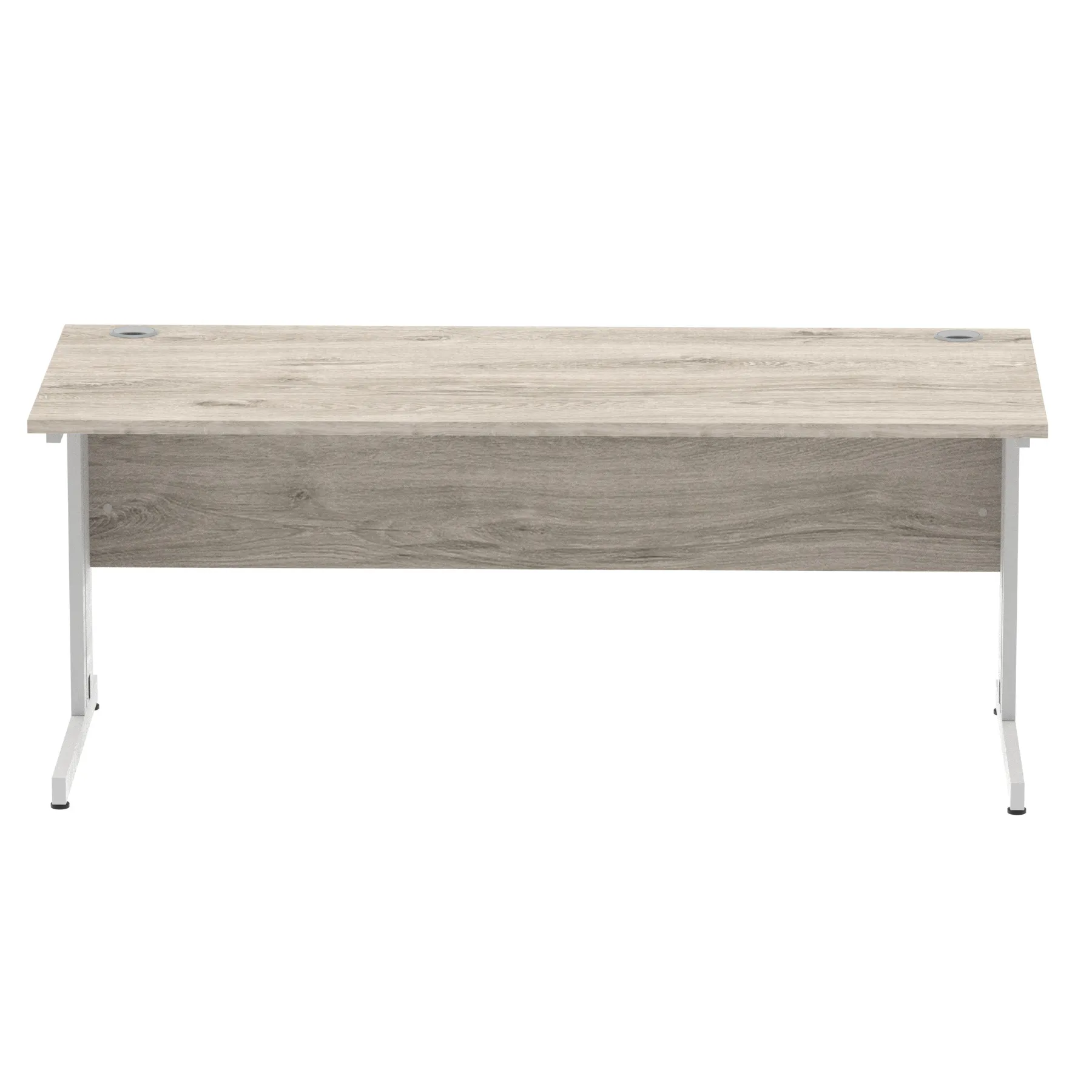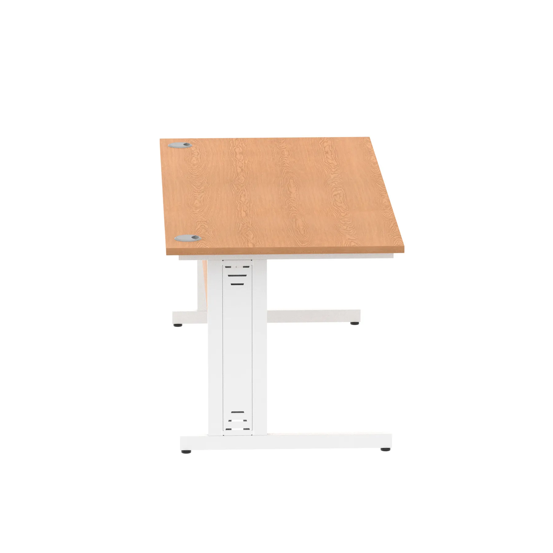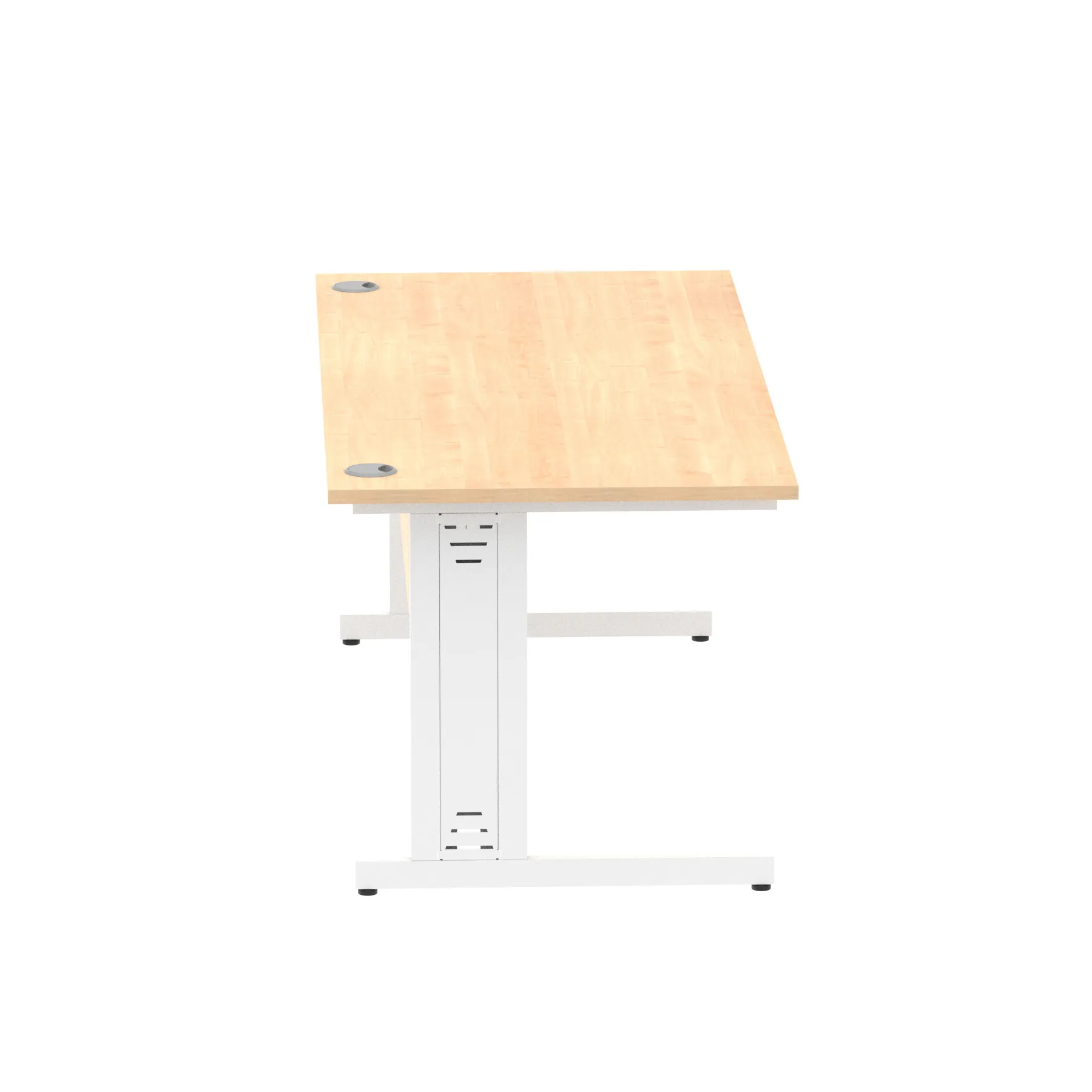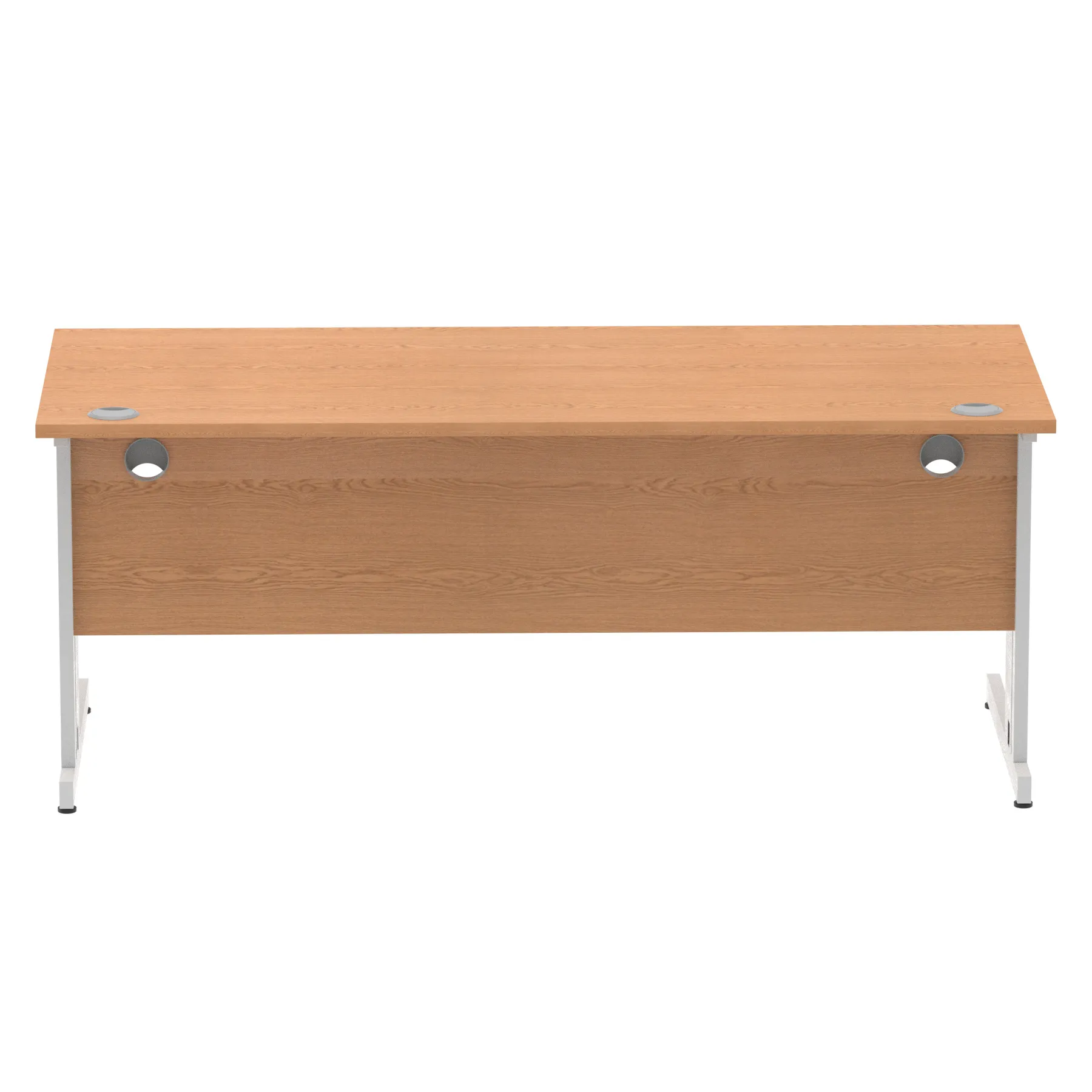 Impulse contract desk | 25mm tops | wire management panel | Heat resistant melamine finish | 18mm modesty panel | 2mm protective abs edging | Silver coated double strut legs | 2 cable ports | Height adjustable feet | Steel to steel fixings | 2 modesty panel slots | Deep set modesty panel (5″) allows for compatibility of most screen clamp fittings | Weight Capacity 135Kg