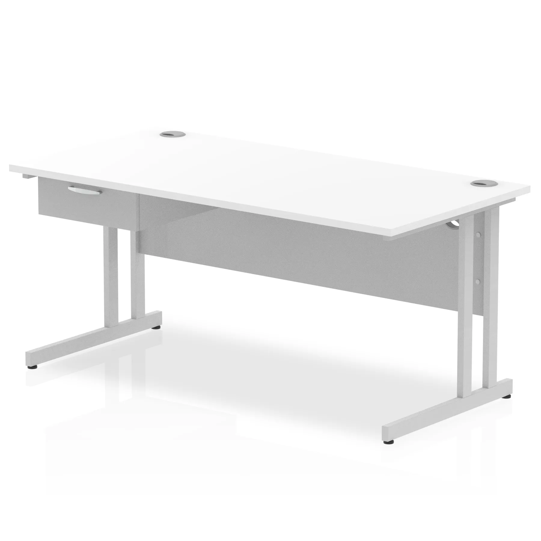 Impulse Cantilever Straight Desk Silver Frame With Single One Drawer Fixed Pedestal