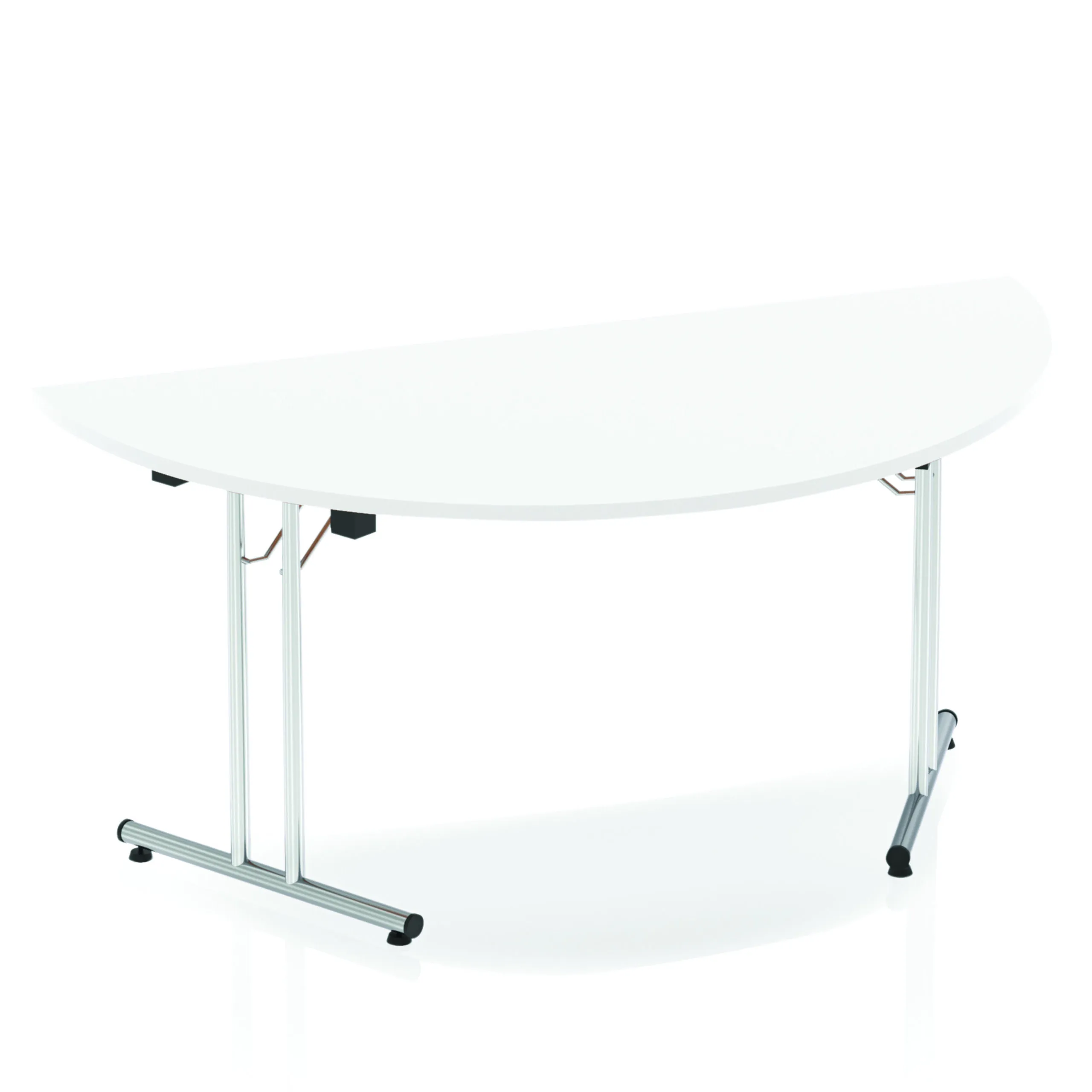 Impulse freestanding meeting table | Table folds easily for space efficient storage | Provides excellent team working environment | 25mm thick top | Attractive silver coated leg | 2mm abs protective edging | Heat resistant beech melamine finish | Steel to steel fittings | Weight Capacity 100Kg