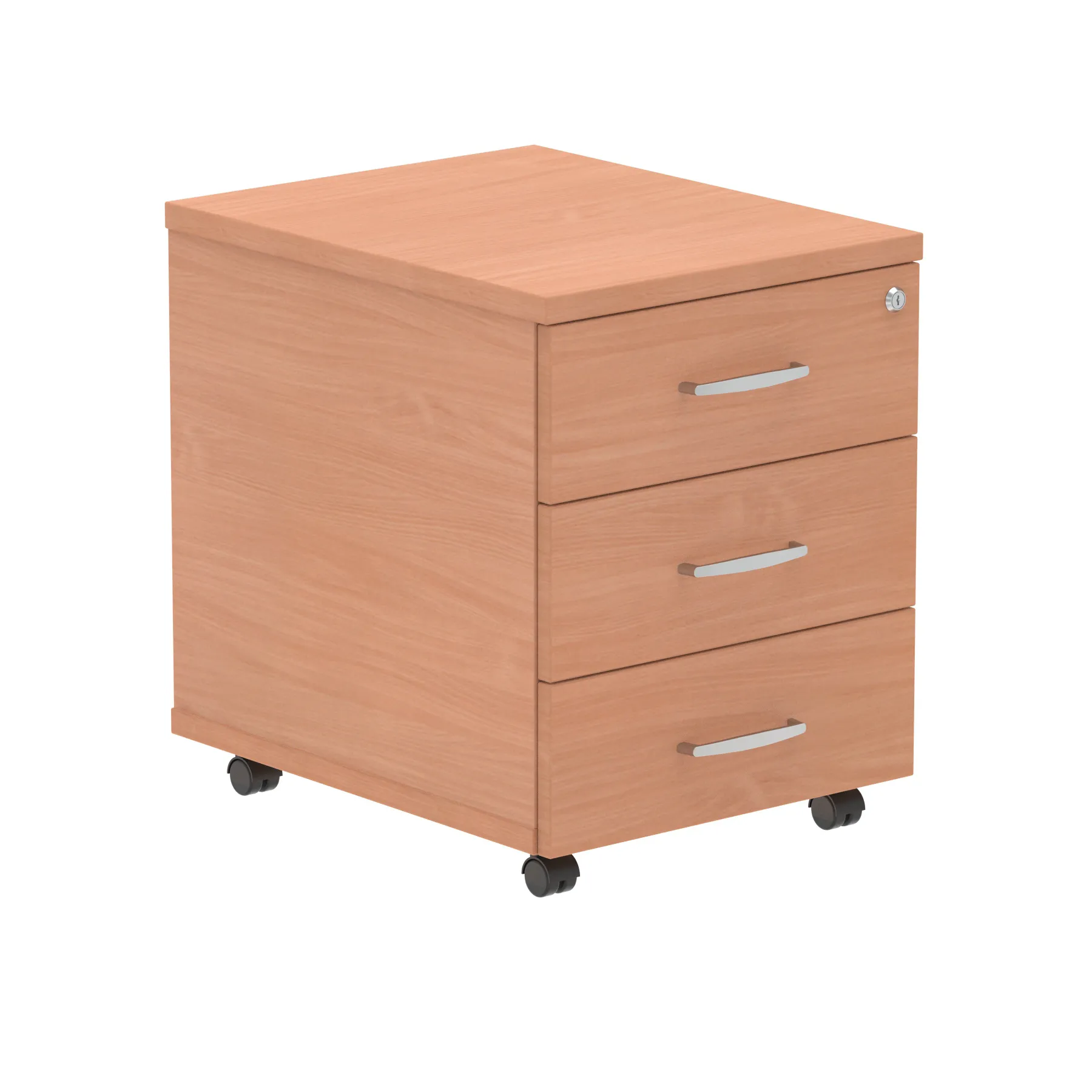 Impulse mobile pedestal | 25mm top | Full 18mm back board | 2mm abs protective edges | Steel handles | Solid box drawer construction | Fits A4 filing (Filing rails only available on the 2 drawer variant) | Smooth running castors for mobility | Steel to steel fixings | Lockable drawers | Heat resistant beech melamine finish