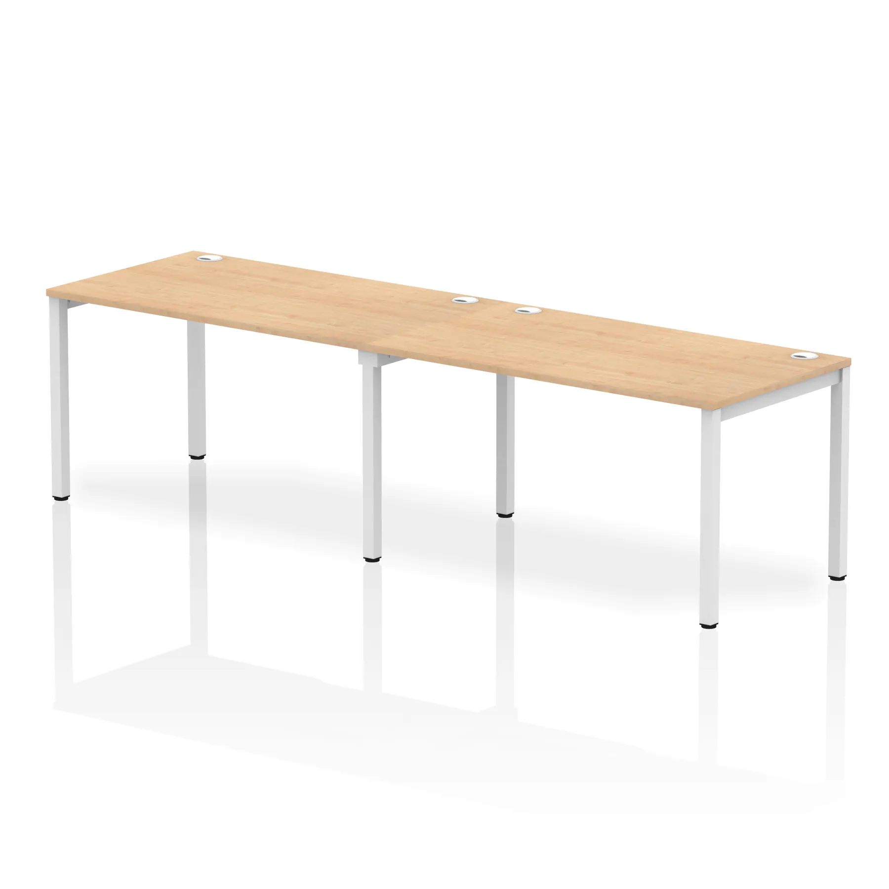 • Conjoinable frame system allows for easy adaptability • Stylish powder coated goal post leg design • Double cable ports for easy cable management • 25mm thick tops with 2mm protective edging • Adjustable Feet • Choice of 7 wood finishes and 3 leg colours • Weight Capacity: 100kg per user