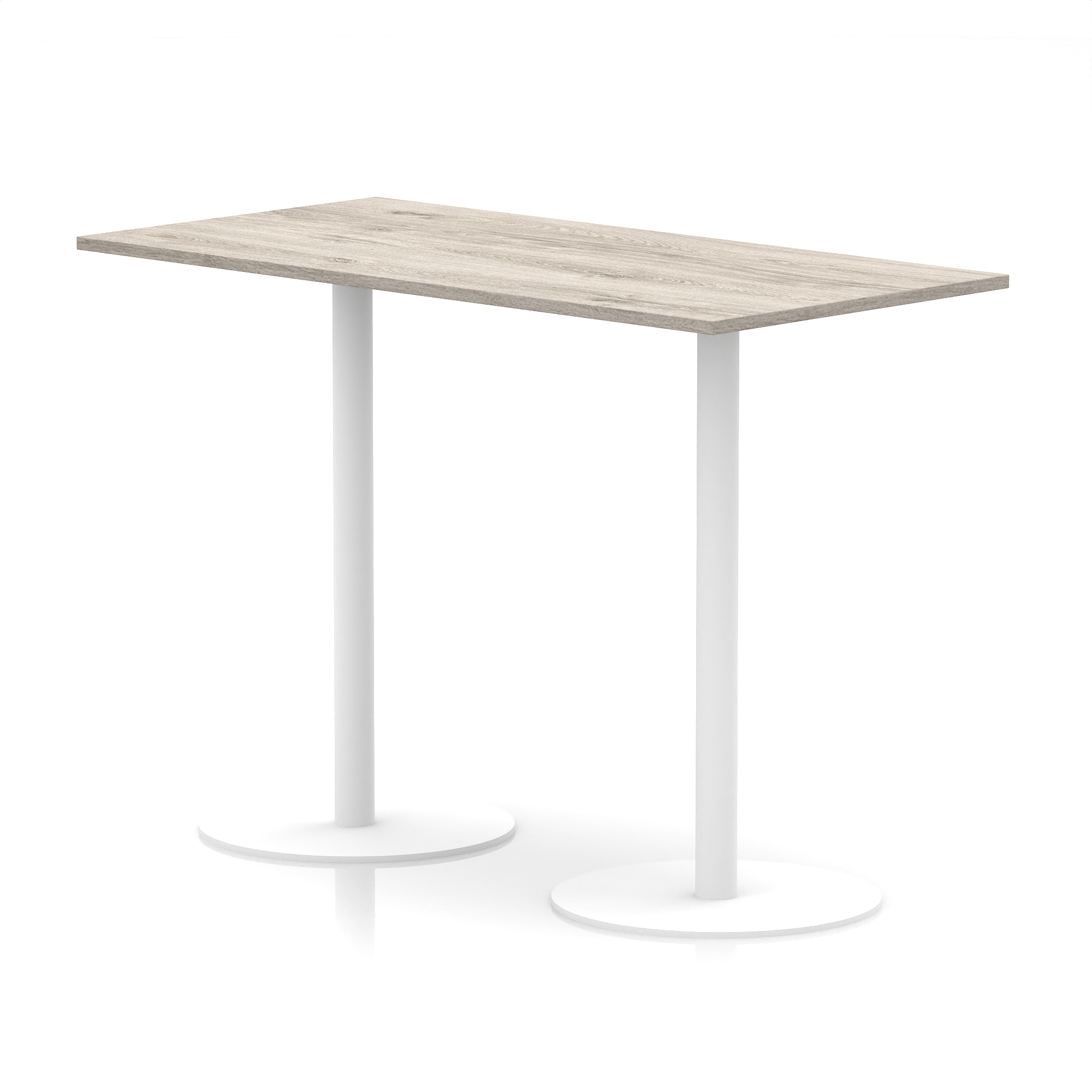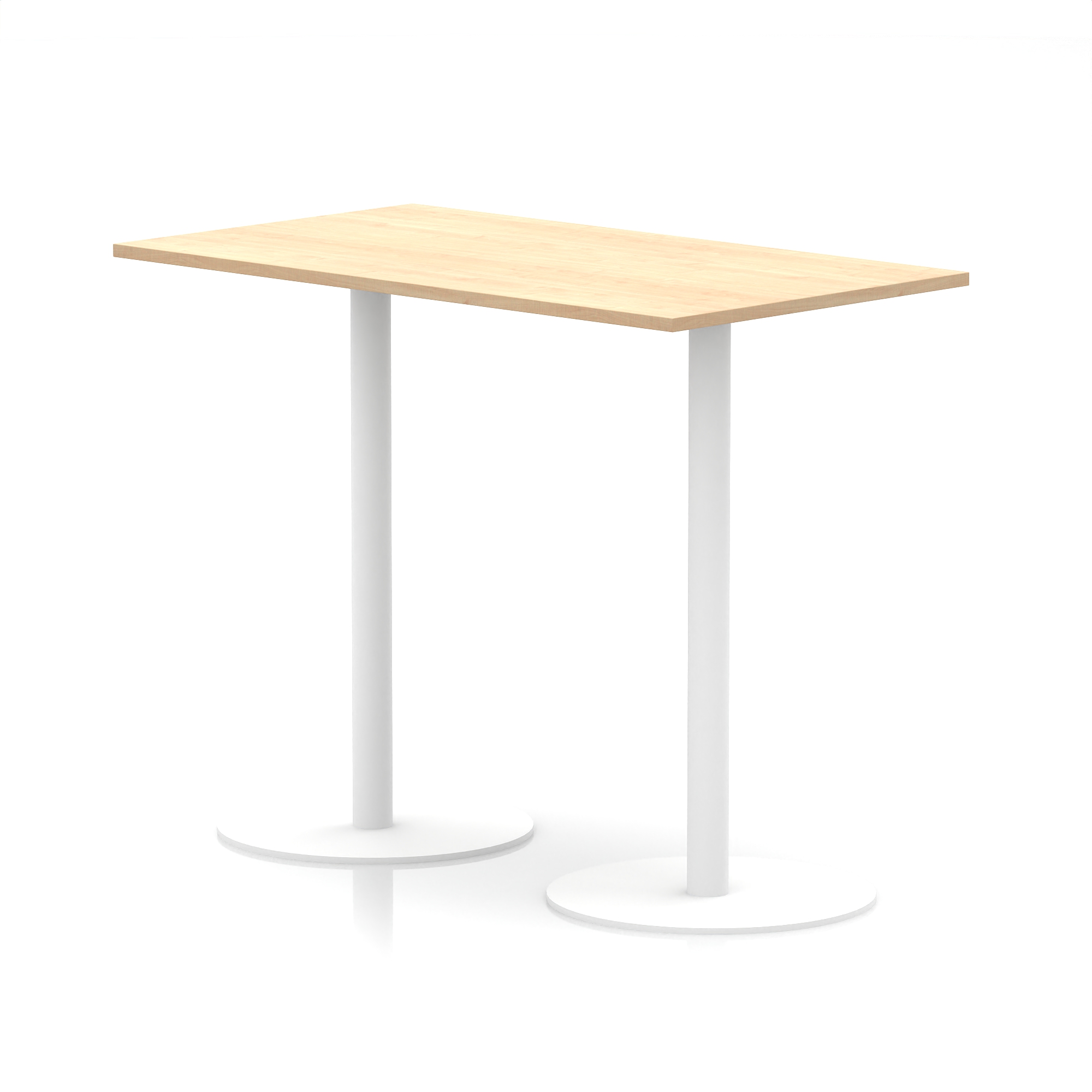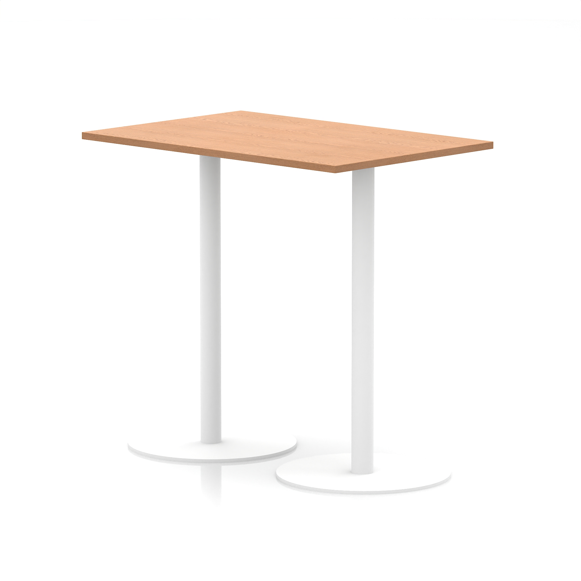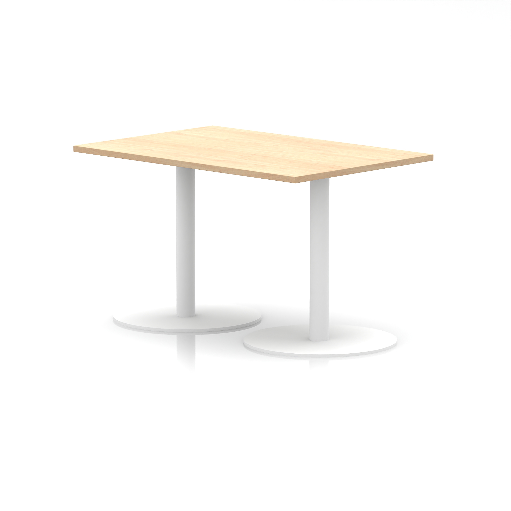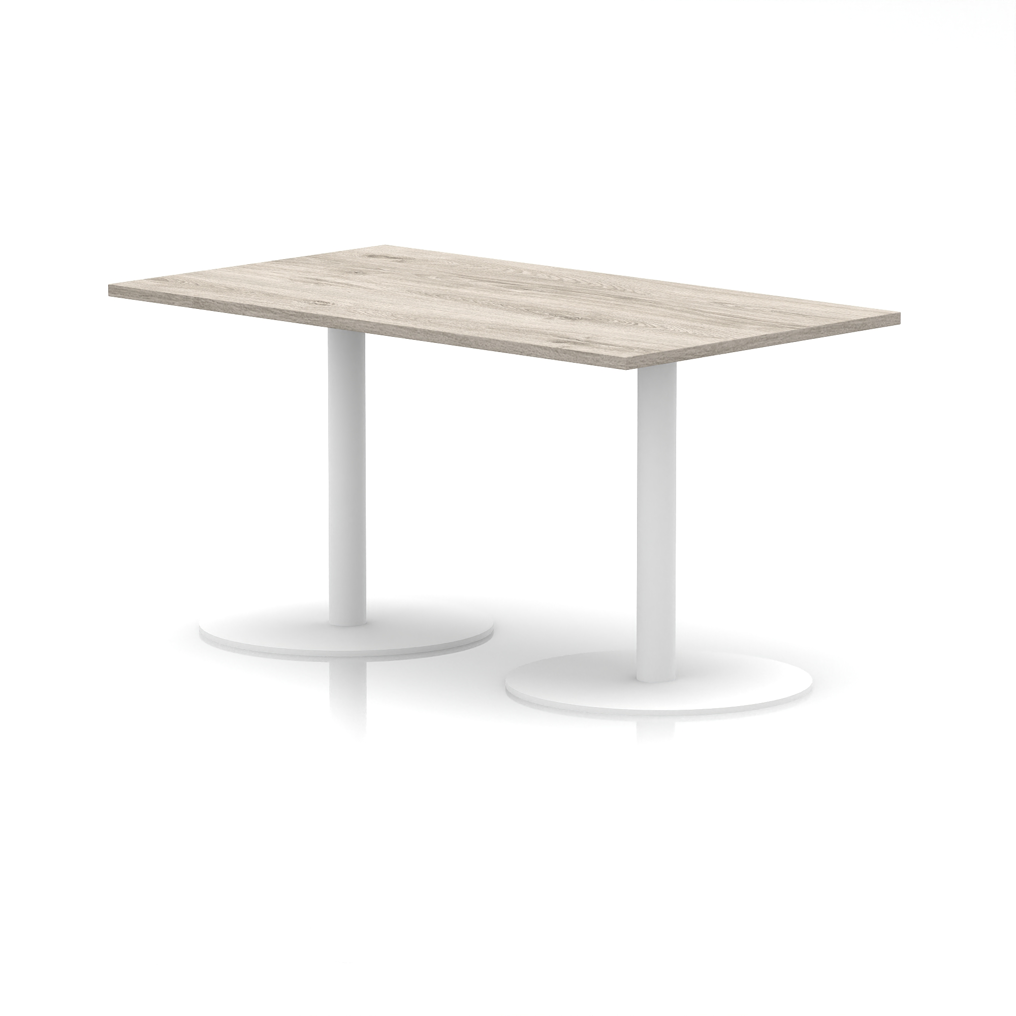 25mm thick desk top profile | Dual, brushed stainless steel effect circular base (580mm diameter) | Brushed stainless steel pillars (76mm diameter) | Weighted base provides stability | Two part bolted frame system
