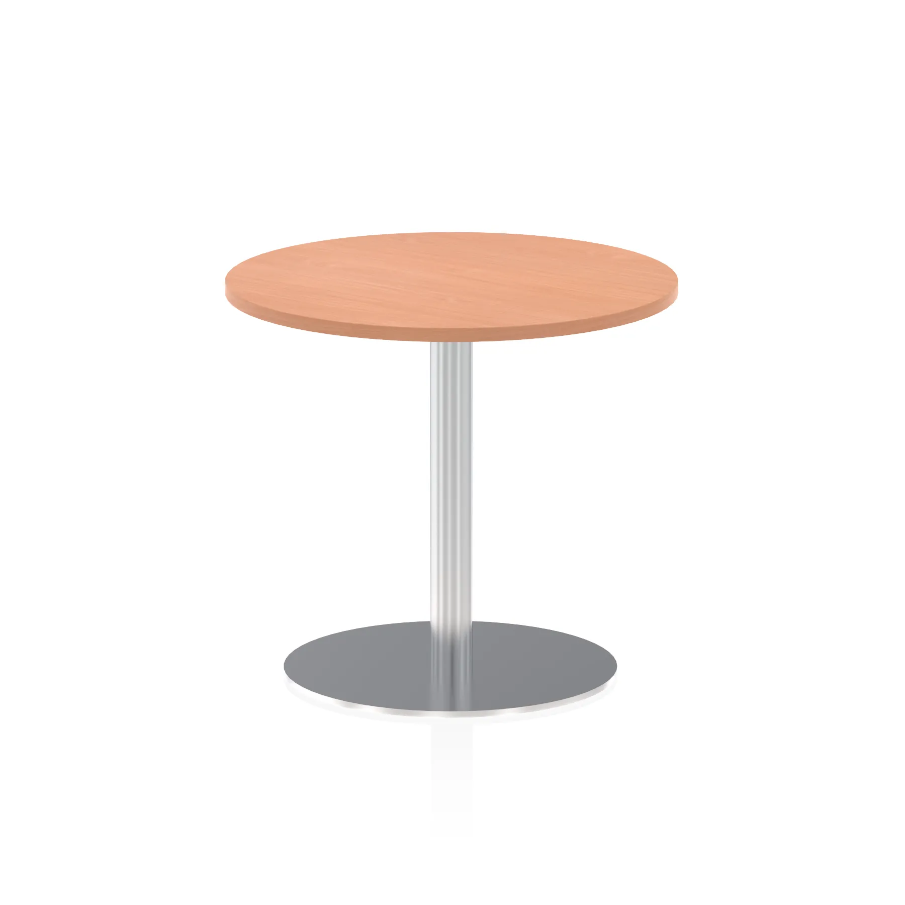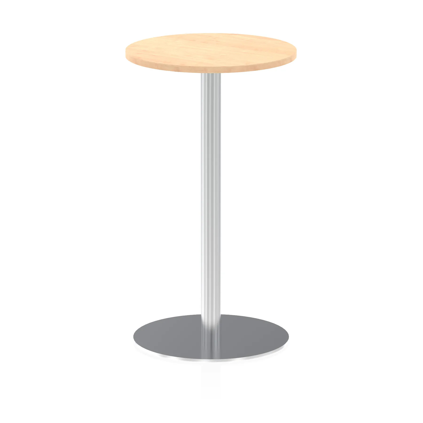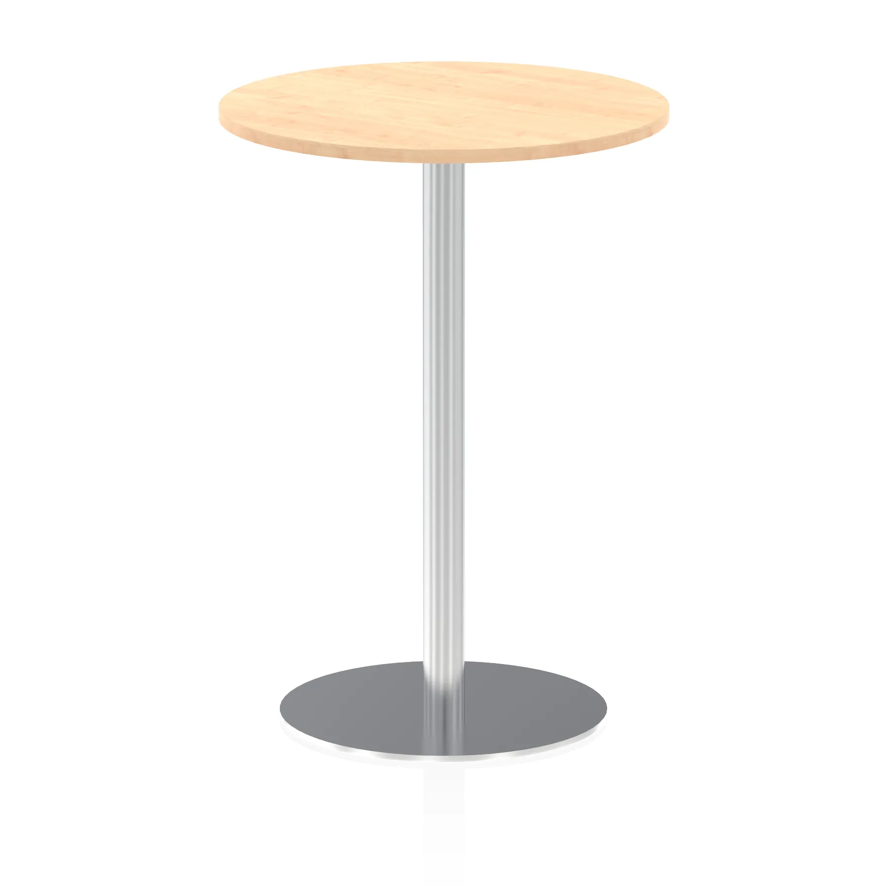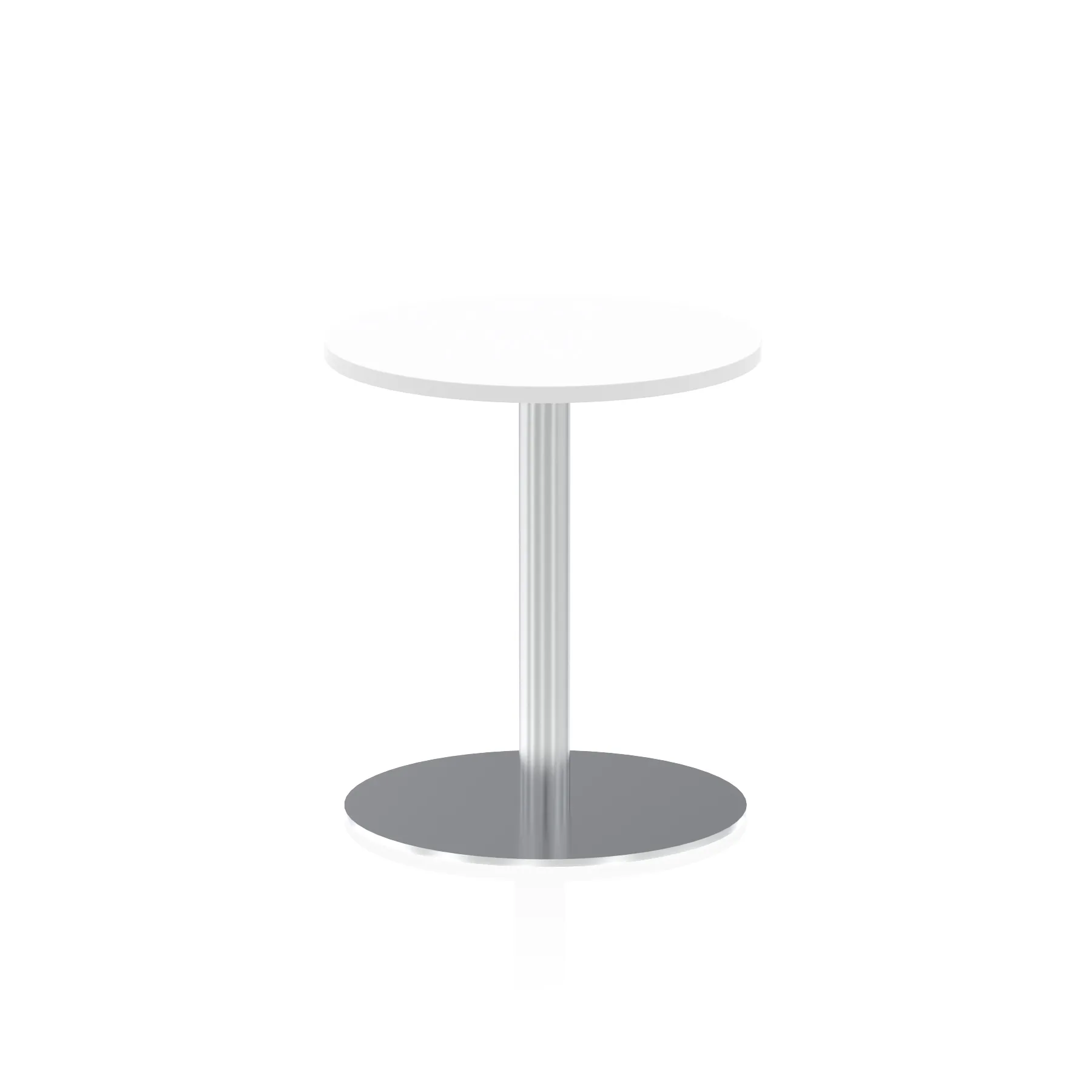 25mm thick desk top profile | Brushed stainless steel effect circular base (580mm diameter) | Brushed stainless steel pillars (76mm diameter) | Weighted base provides stability | Two part bolted frame system