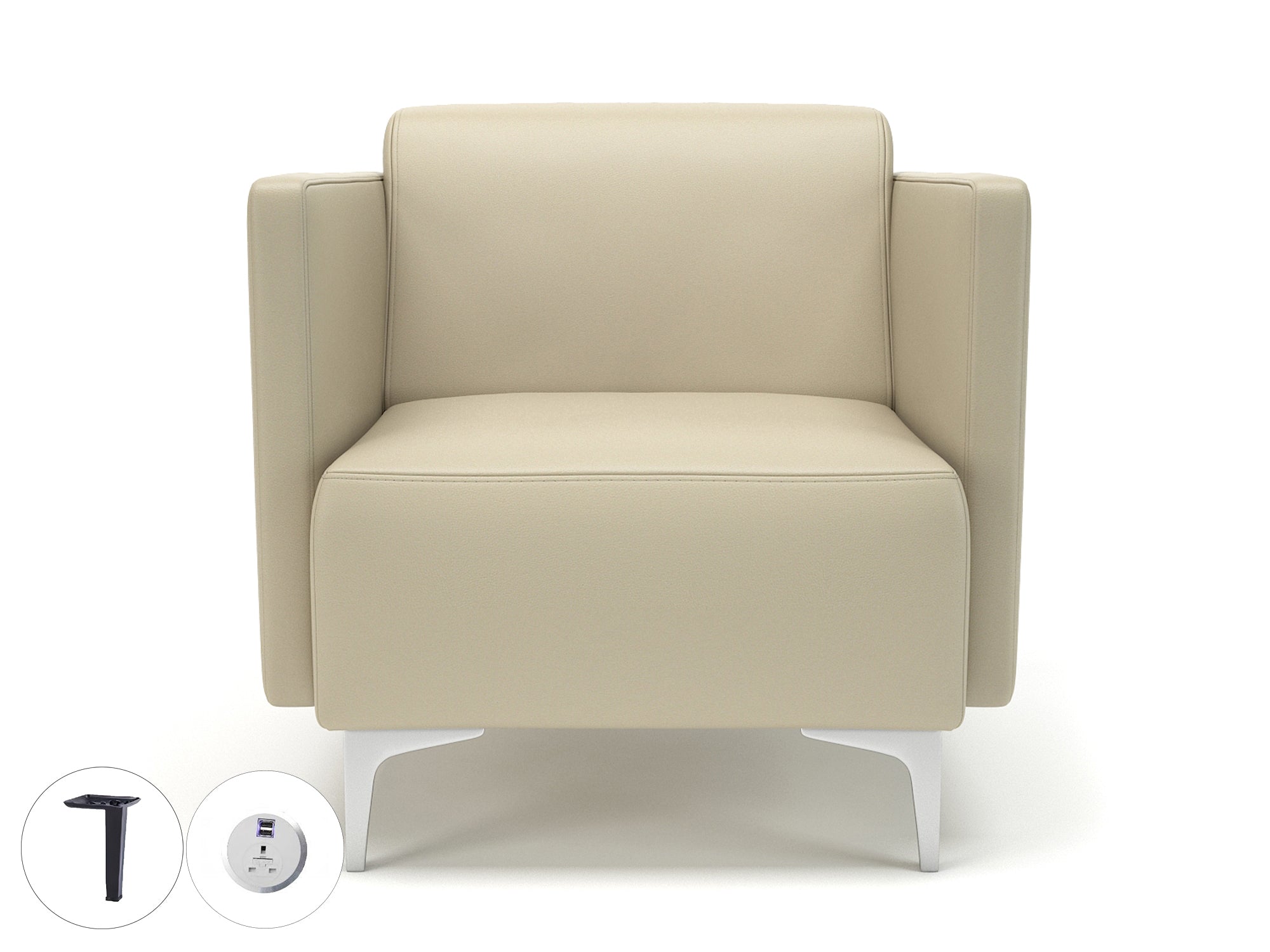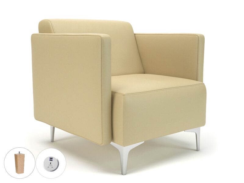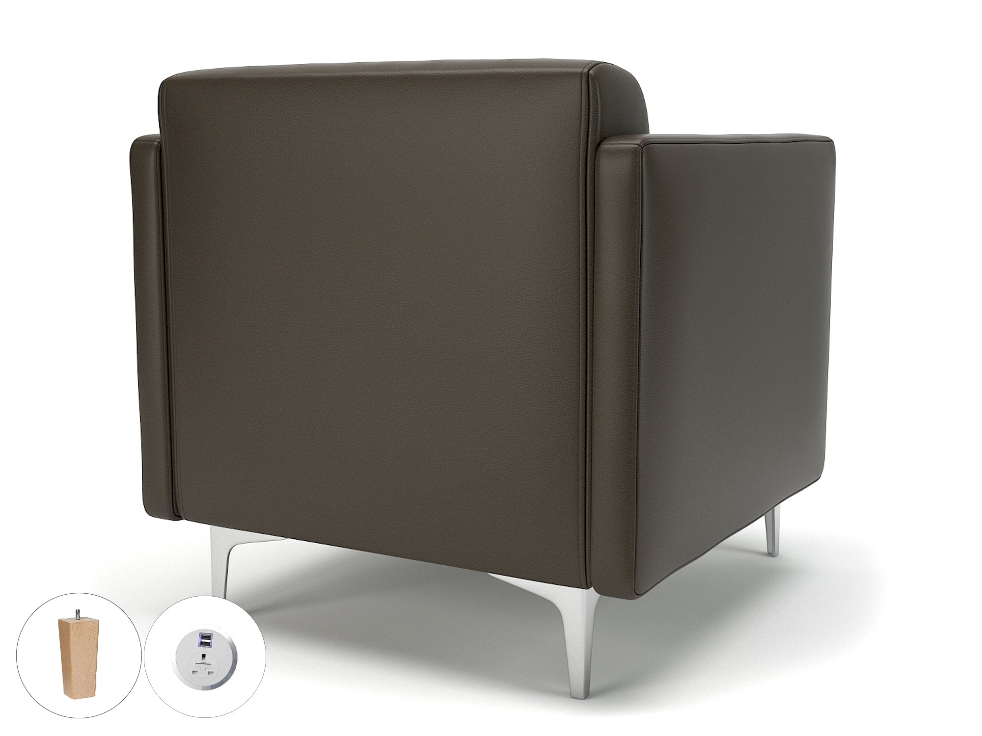 Napa Slim Arm 75cm Wide Armchair in Cristina Marrone Ultima Faux Leather with Socket