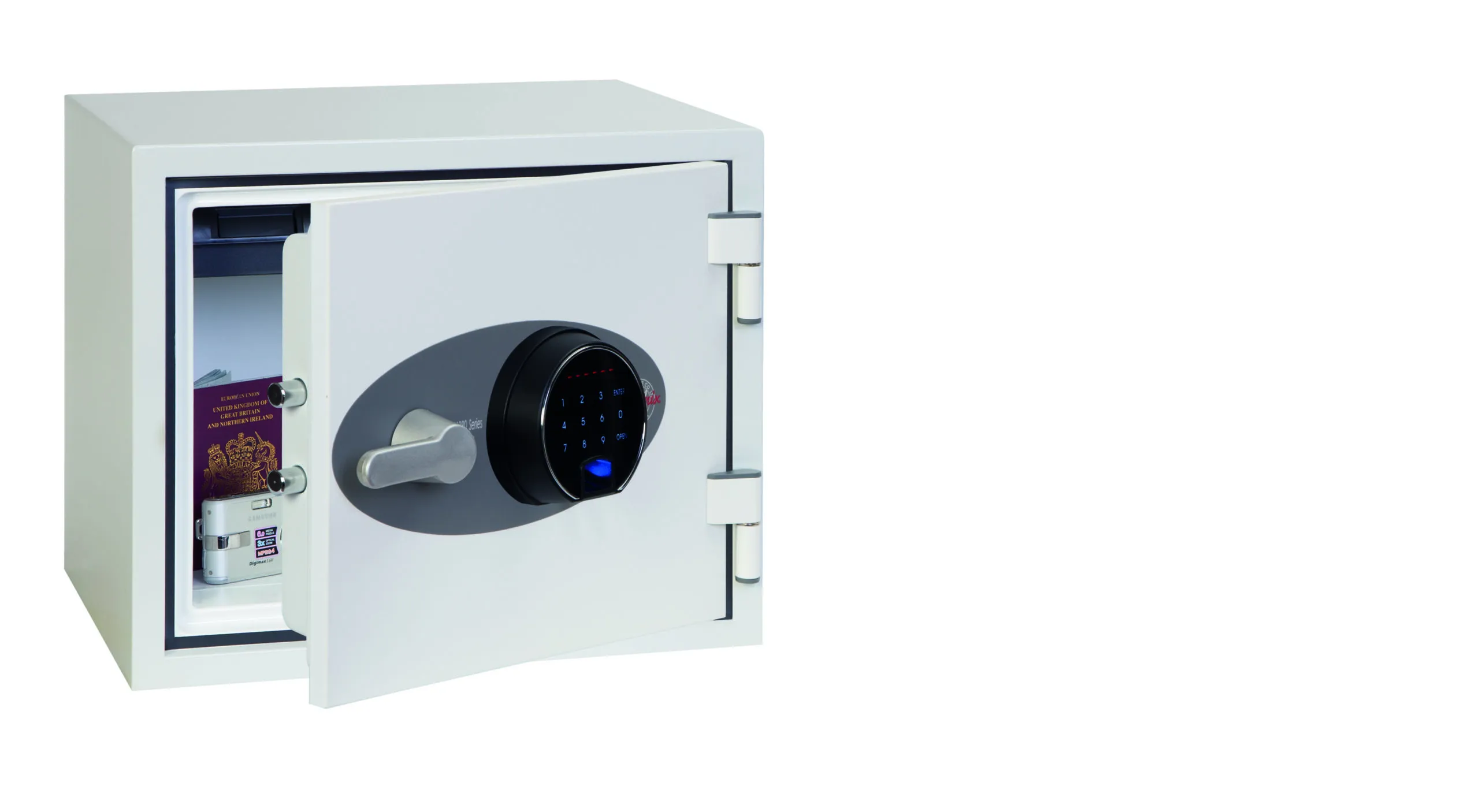 Fingerprint – Fitted with an advanced high security touchscreen keypad & fingerprint lock with clear LED display, internal alarm, dual control, hidden code and scrambled code that can be programmed as standard with up to 128 fingerprints